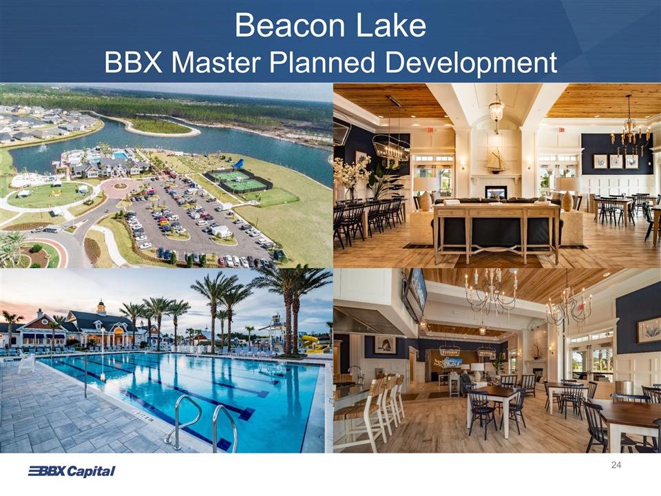 Beacon Lake Future Phases BBX Master Planned Development Beacon Lake – Future Phases Master Planned Development Developed and owned 100% by BBX Phase III B (200 Lots) Phase IV (299 Lots) • 68, 63’ Lots are under • All 299 undeveloped lots contract with Toll Brothers sold to Dream Finders • 132, 43’ Lots are available 23
